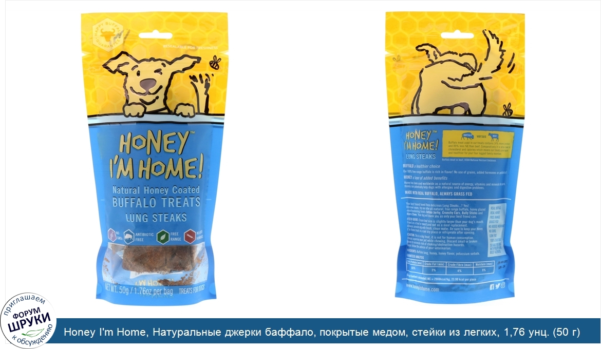 Друзья, если у вас есть отзыв/дополнение/комментарий/вопрос относительно Honey I'm Home, Натуральные джерки баффало, покрытые медом, стейки из легких, 1,76 унц. (50 г) - напишите его ответом в эту тему (это будет полезно всему сообществу в целом и вам в отдельности).