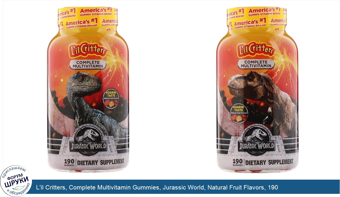 Друзья, если у вас есть отзыв/дополнение/комментарий/вопрос относительно L'il Critters, Complete Multivitamin Gummies, Jurassic World, Natural Fruit Flavors, 190 Gummies - напишите его ответом в эту тему (это будет полезно всему сообществу в целом и вам в отдельности).