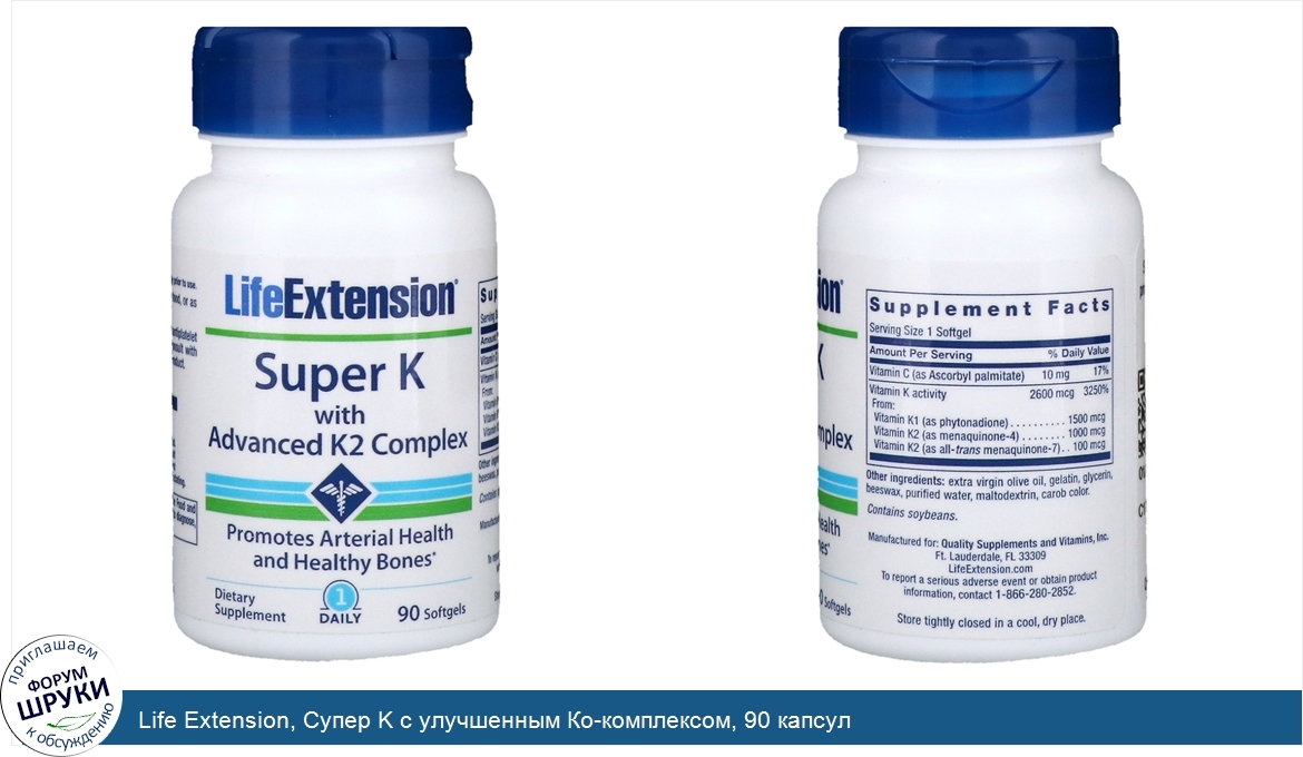 Категории: Life Extension, Пищевые добавки, Витамины, Витамин К, Лайф Экстэншн, 78402