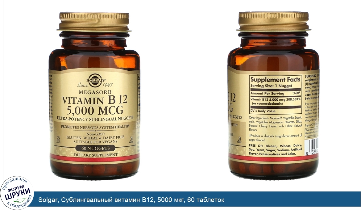 Друзья, если у вас есть отзыв/дополнение/комментарий/вопрос относительно Solgar, Сублингвальный витамин B12, 5000 мкг, 60 таблеток - напишите его ответом в эту тему (это будет полезно всему сообществу в целом и вам в отдельности).