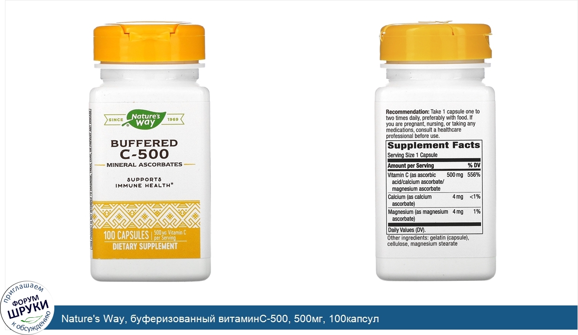 Друзья, если у вас есть отзыв/дополнение/комментарий/вопрос относительно Nature's Way, буферизованный витаминC-500, 500мг, 100капсул - напишите его ответом в эту тему (это будет полезно всему сообществу в целом и вам в отдельности).