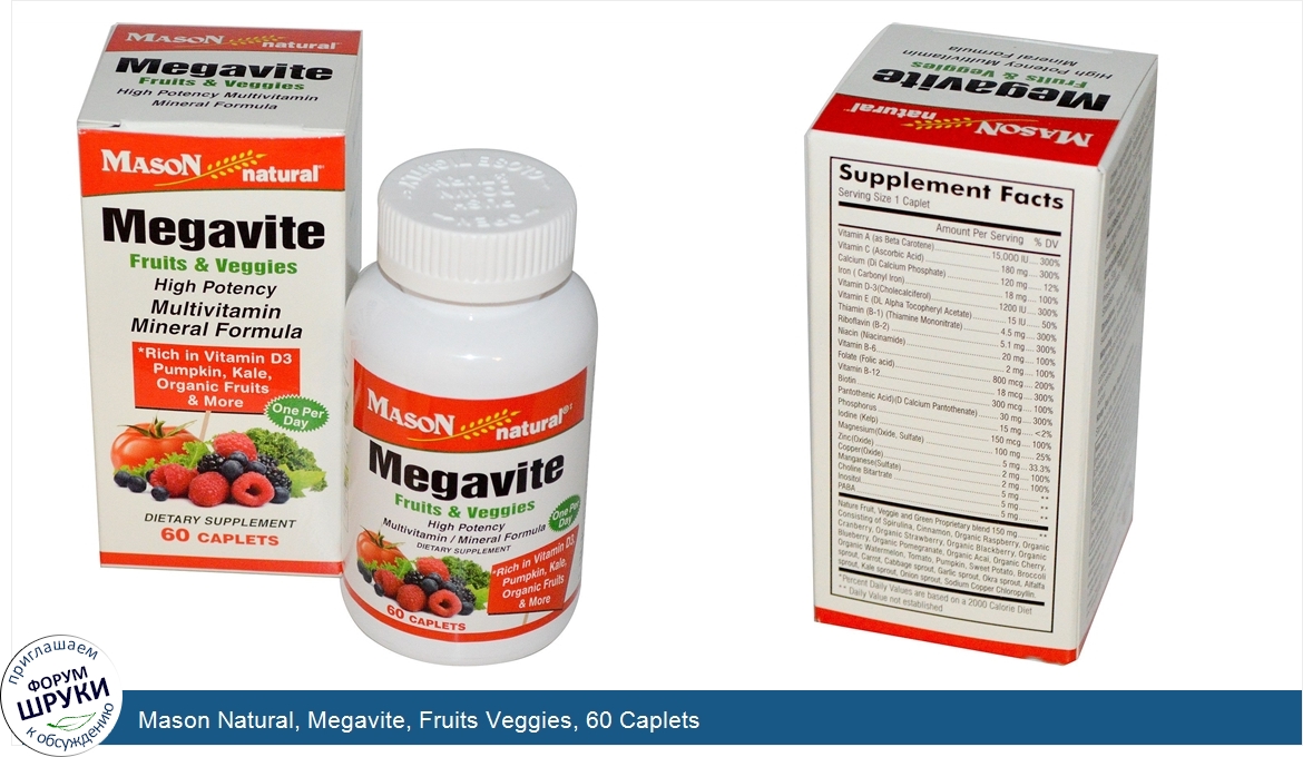 Друзья, если у вас есть отзыв/дополнение/комментарий/вопрос относительно Mason Natural, Megavite, Fruits Veggies, 60 Caplets - напишите его ответом в эту тему (это будет полезно всему сообществу в целом и вам в отдельности).