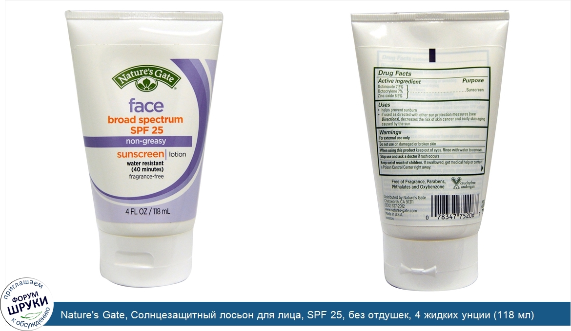 Друзья, если у вас есть отзыв/дополнение/комментарий/вопрос относительно Nature's Gate, Солнцезащитный лосьон для лица, SPF 25, без отдушек, 4 жидких унции (118 мл) - напишите его ответом в эту тему (это будет полезно всему сообществу в целом и вам в отдельности).