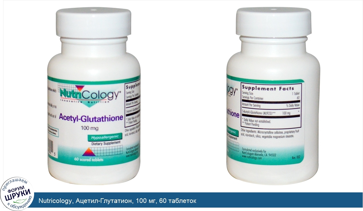 Друзья, если у вас есть отзыв/дополнение/комментарий/вопрос относительно Nutricology, Ацетил-Глутатион, 100 мг, 60 таблеток - напишите его ответом в эту тему (это будет полезно всему сообществу в целом и вам в отдельности).