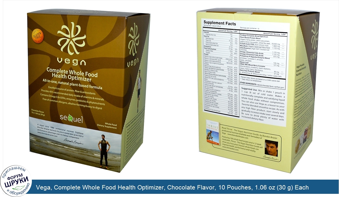 Друзья, если у вас есть отзыв/дополнение/комментарий/вопрос относительно Vega, Complete Whole Food Health Optimizer, Chocolate Flavor, 10 Pouches, 1.06 oz (30 g) Each - напишите его ответом в эту тему (это будет полезно всему сообществу в целом и вам в отдельности).