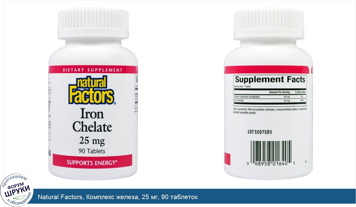 Категории: Natural Factors, Пищевые добавки, Микроэлементы, Железо, Натурал Факторс, 2604