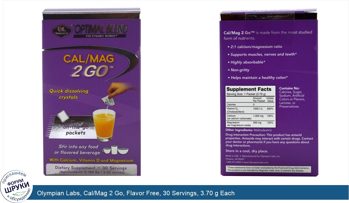 Друзья, если у вас есть отзыв/дополнение/комментарий/вопрос относительно Olympian Labs, Cal/Mag 2 Go, Flavor Free, 30 Servings, 3.70 g Each - напишите его ответом в эту тему (это будет полезно всему сообществу в целом и вам в отдельности).
