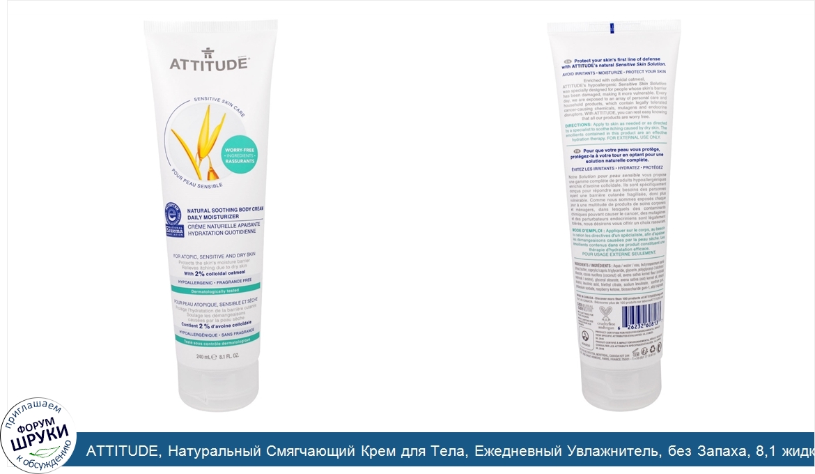 Друзья, если у вас есть отзыв/дополнение/комментарий/вопрос относительно ATTITUDE, Натуральный Смягчающий Крем для Тела, Ежедневный Увлажнитель, без Запаха, 8,1 жидких унций (240 мл) - напишите его ответом в эту тему (это будет полезно всему сообществу в целом и вам в отдельности).