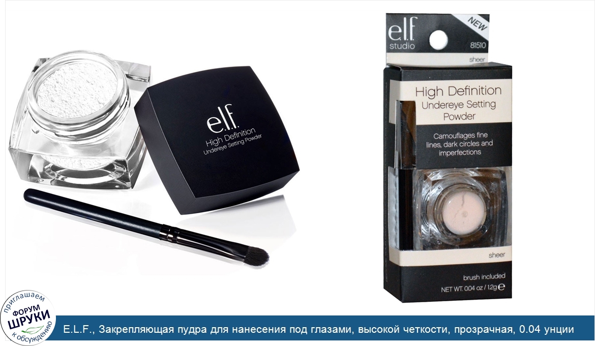 E.L.F., Закрепляющая пудра для нанесения под глазами, высокой четкости, прозрачная, 0.04 унции (1.2 г)
