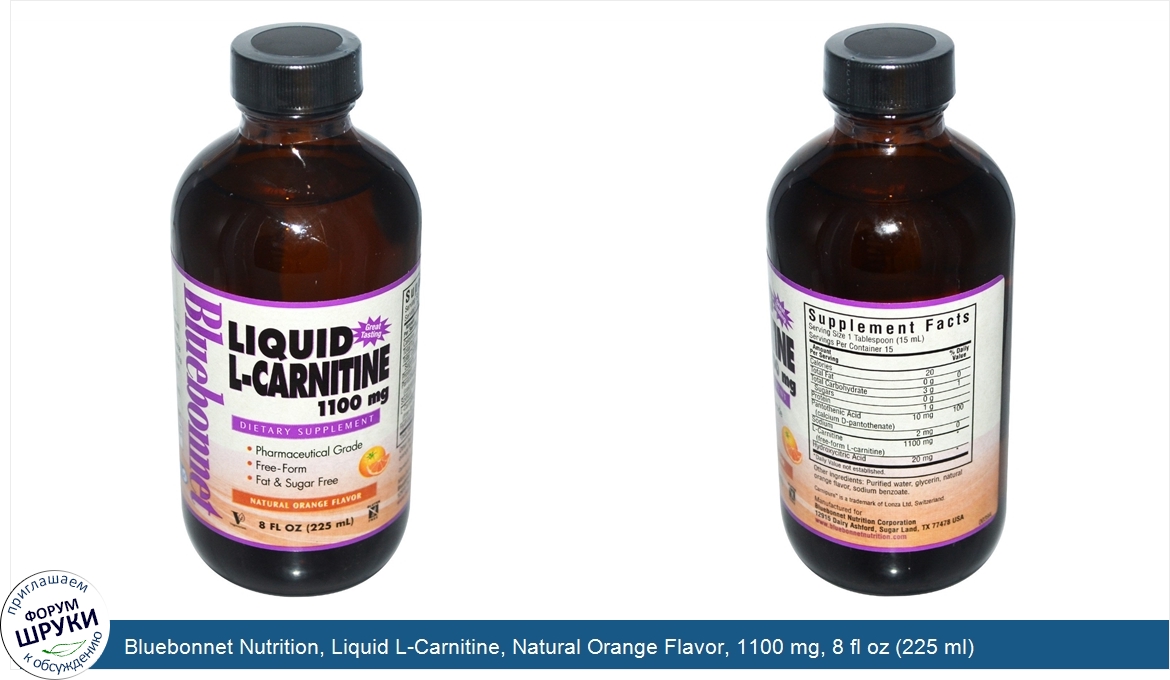 ru Bluebonnet Nutrition, Liquid L-Carnitine, Natural Orange Flavor, 1100 mg, 8 fl oz (225 ml)
