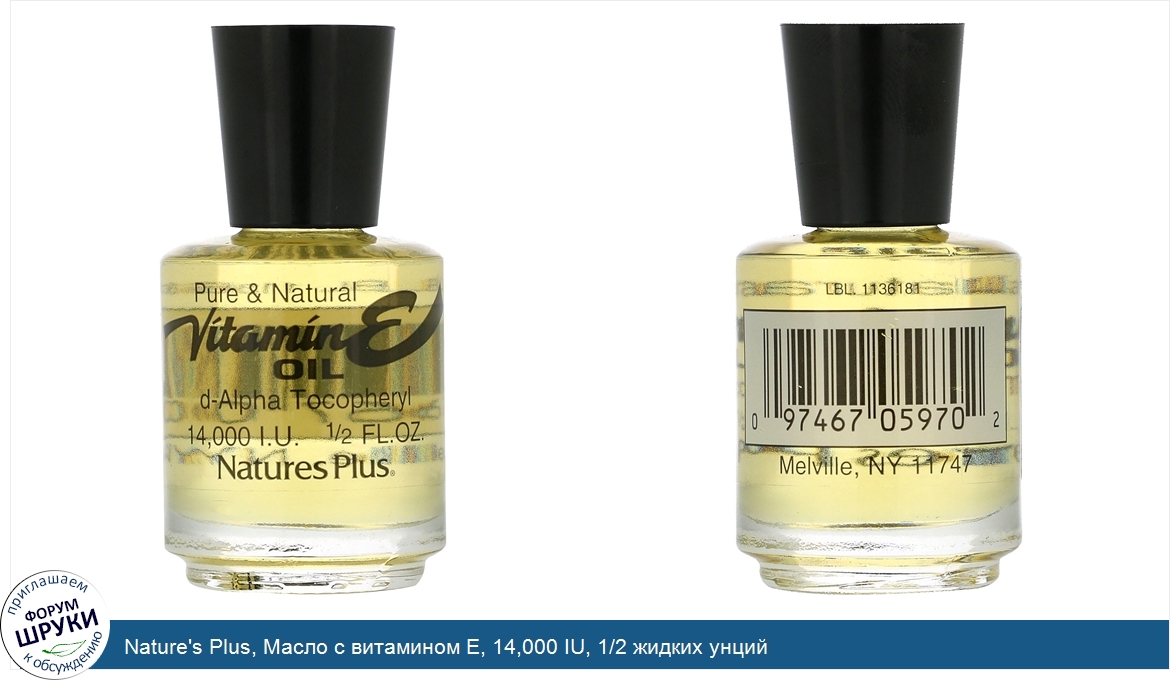 Nature\'s Plus, Масло с витамином Е, 14,000 IU, 1/2 жидких унций