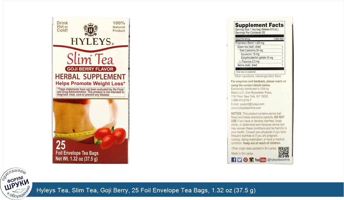 Друзья, если у вас есть отзыв/дополнение/комментарий/вопрос относительно Hyleys Tea, Slim Tea, Goji Berry, 25 Foil Envelope Tea Bags, 1.32 oz (37.5 g) - напишите его ответом в эту тему (это будет полезно всему сообществу в целом и вам в отдельности).