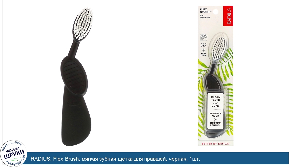 Друзья, если у вас есть отзыв/дополнение/комментарий/вопрос относительно RADIUS, Flex Brush, мягкая зубная щетка для правшей, черная, 1шт. - напишите его ответом в эту тему (это будет полезно всему сообществу в целом и вам в отдельности).
