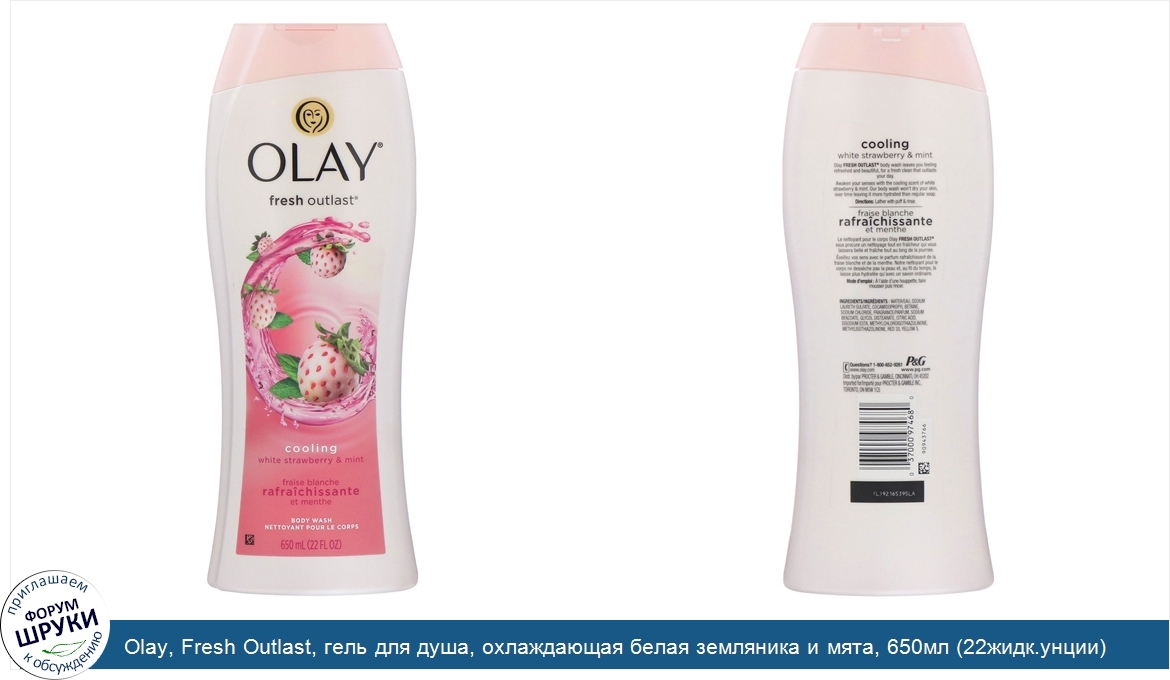 ru Olay, Fresh Outlast, гель для душа, охлаждающая белая земляника и мята, 650мл (22жидк.унции)