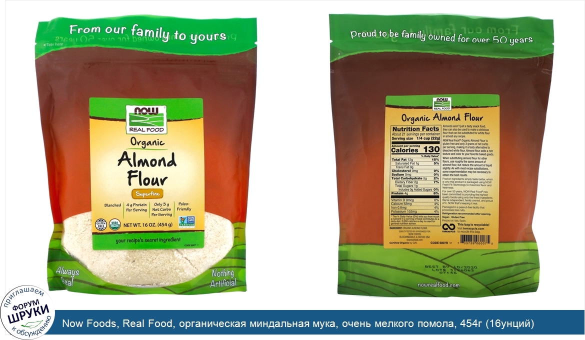 Друзья, если у вас есть отзыв/дополнение/комментарий/вопрос относительно Now Foods, Real Food, органическая миндальная мука, очень мелкого помола, 454г (16унций) - напишите его ответом в эту тему (это будет полезно всему сообществу в целом и вам в отдельности).
