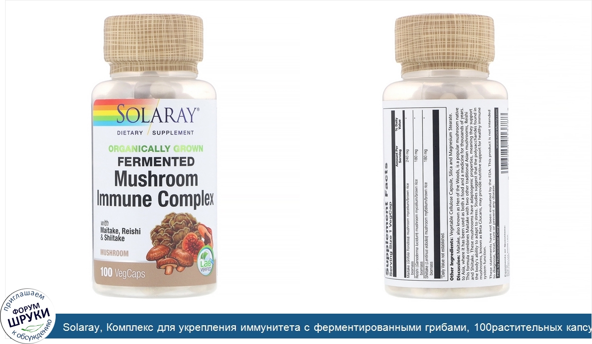 ru Solaray, Комплекс для укрепления иммунитета с ферментированными грибами, 100растительных капсул