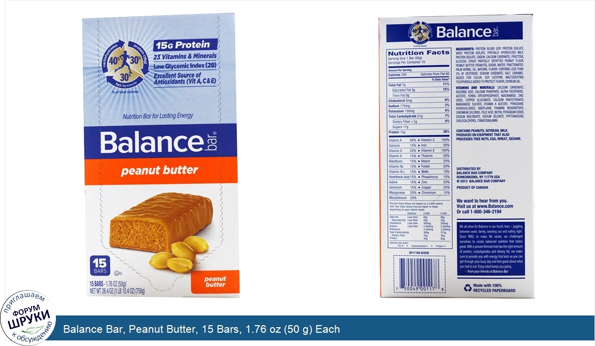 Друзья, если у вас есть отзыв/дополнение/комментарий/вопрос относительно Balance Bar, Peanut Butter, 15 Bars, 1.76 oz (50 g) Each - напишите его ответом в эту тему (это будет полезно всему сообществу в целом и вам в отдельности).