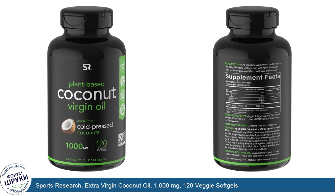 Друзья, если у вас есть отзыв/дополнение/комментарий/вопрос относительно Sports Research, Extra Virgin Coconut Oil, 1,000 mg, 120 Veggie Softgels - напишите его ответом в эту тему (это будет полезно всему сообществу в целом и вам в отдельности).