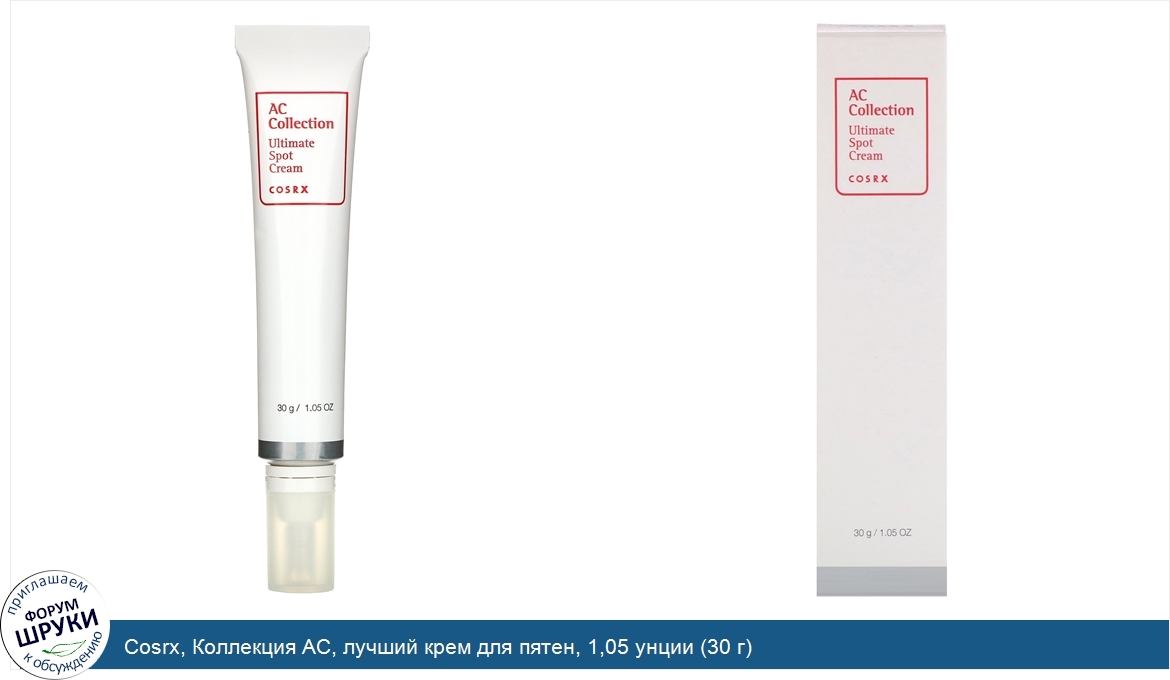 Друзья, если у вас есть отзыв/дополнение/комментарий/вопрос относительно Cosrx, Коллекция AC, лучший крем для пятен, 1,05 унции (30 г) - напишите его ответом в эту тему (это будет полезно всему сообществу в целом и вам в отдельности).