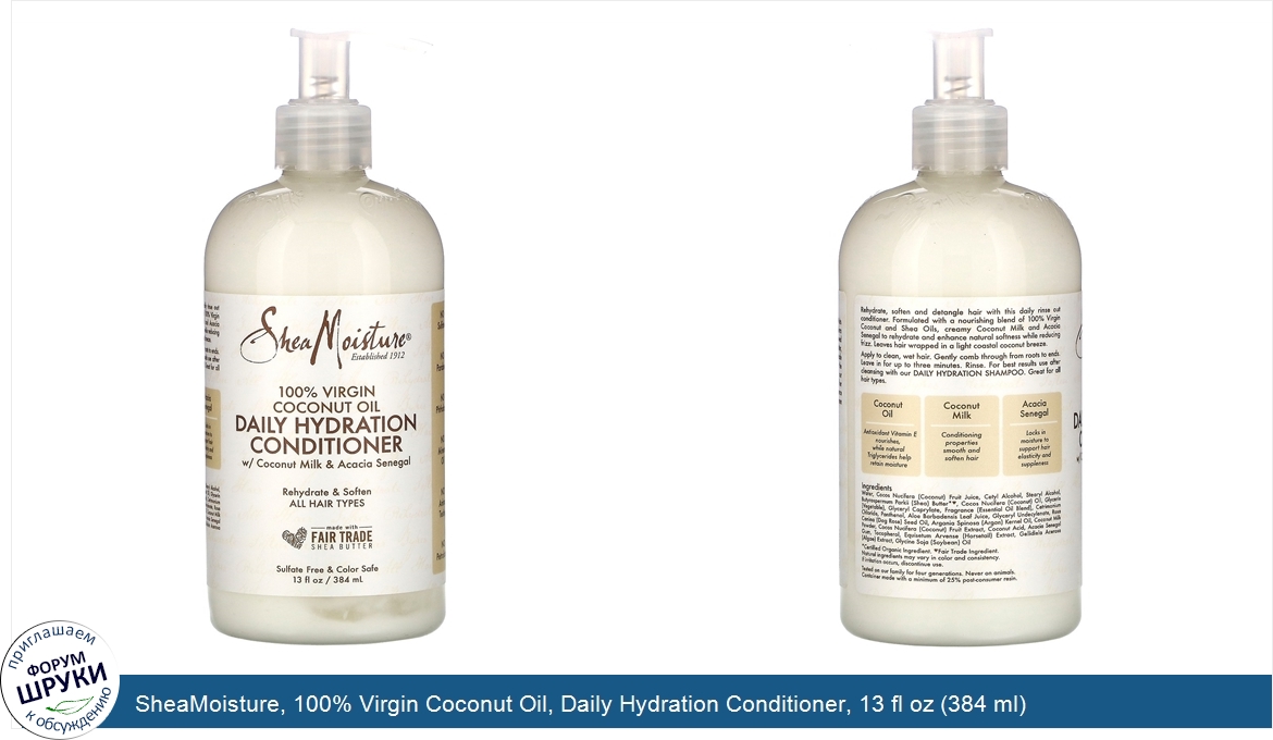 Друзья, если у вас есть отзыв/дополнение/комментарий/вопрос относительно SheaMoisture, 100% Virgin Coconut Oil, Daily Hydration Conditioner, 13 fl oz (384 ml) - напишите его ответом в эту тему (это будет полезно всему сообществу в целом и вам в отдельности).