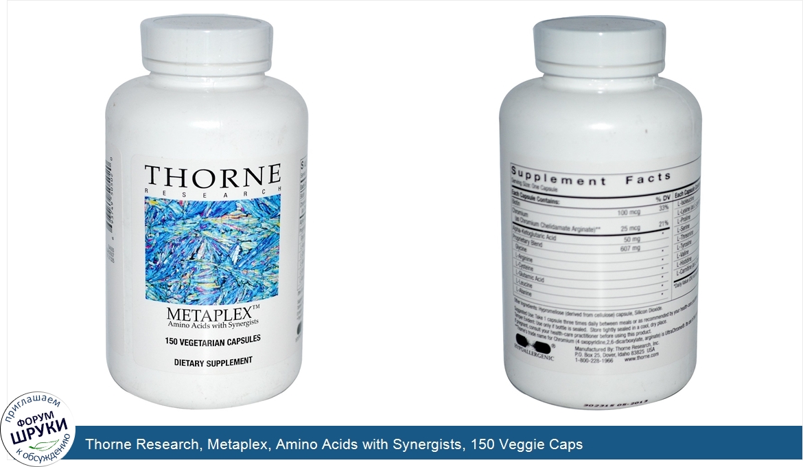 Друзья, если у вас есть отзыв/дополнение/комментарий/вопрос относительно Thorne Research, Metaplex, Amino Acids with Synergists, 150 Veggie Caps - напишите его ответом в эту тему (это будет полезно всему сообществу в целом и вам в отдельности).