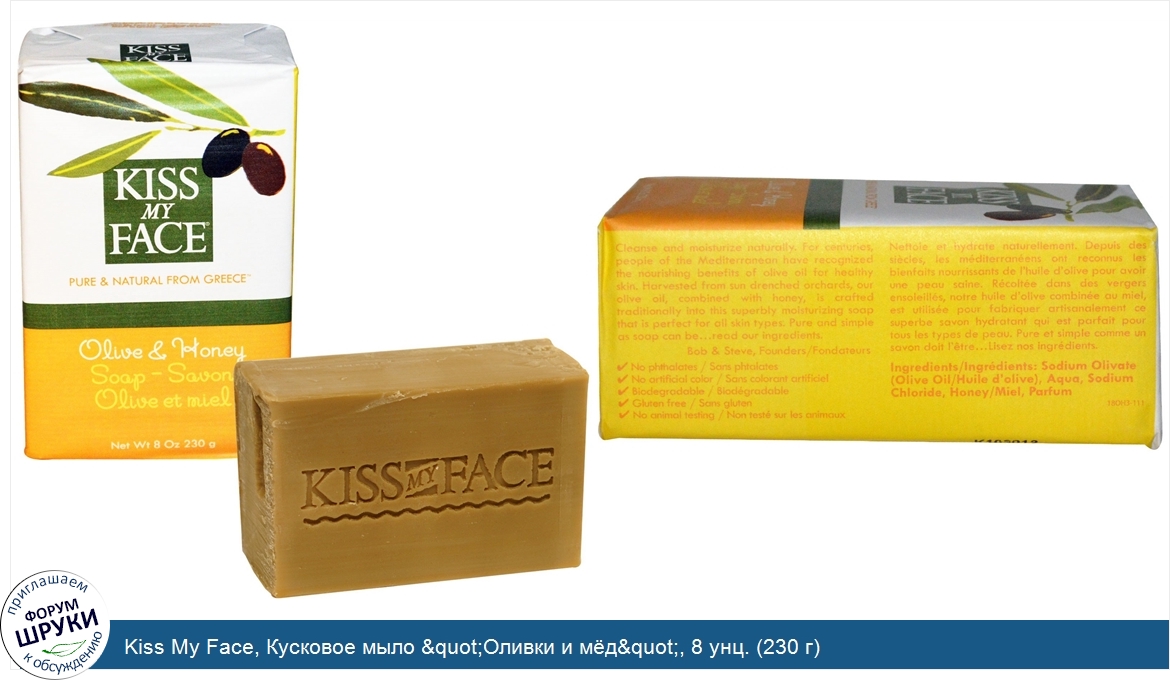 Друзья, если у вас есть отзыв/дополнение/комментарий/вопрос относительно Kiss My Face, Кусковое мыло &quot;Оливки и мёд&quot;, 8 унц. (230 г) - напишите его ответом в эту тему (это будет полезно всему сообществу в целом и вам в отдельности).