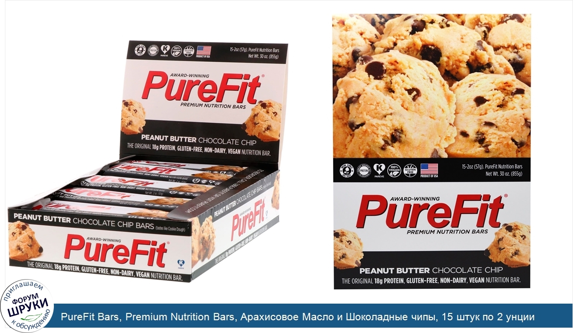 Друзья, если у вас есть отзыв/дополнение/комментарий/вопрос относительно PureFit Bars, Premium Nutrition Bars, Арахисовое Масло и Шоколадные чипы, 15 штук по 2 унции (57 г) каждая - напишите его ответом в эту тему (это будет полезно всему сообществу в целом и вам в отдельности).