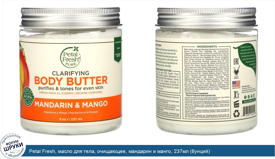 Друзья, если у вас есть отзыв/дополнение/комментарий/вопрос относительно Petal Fresh, масло для тела, очищающее, мандарин и манго, 237мл (8унций) - напишите его ответом в эту тему (это будет полезно всему сообществу в целом и вам в отдельности).