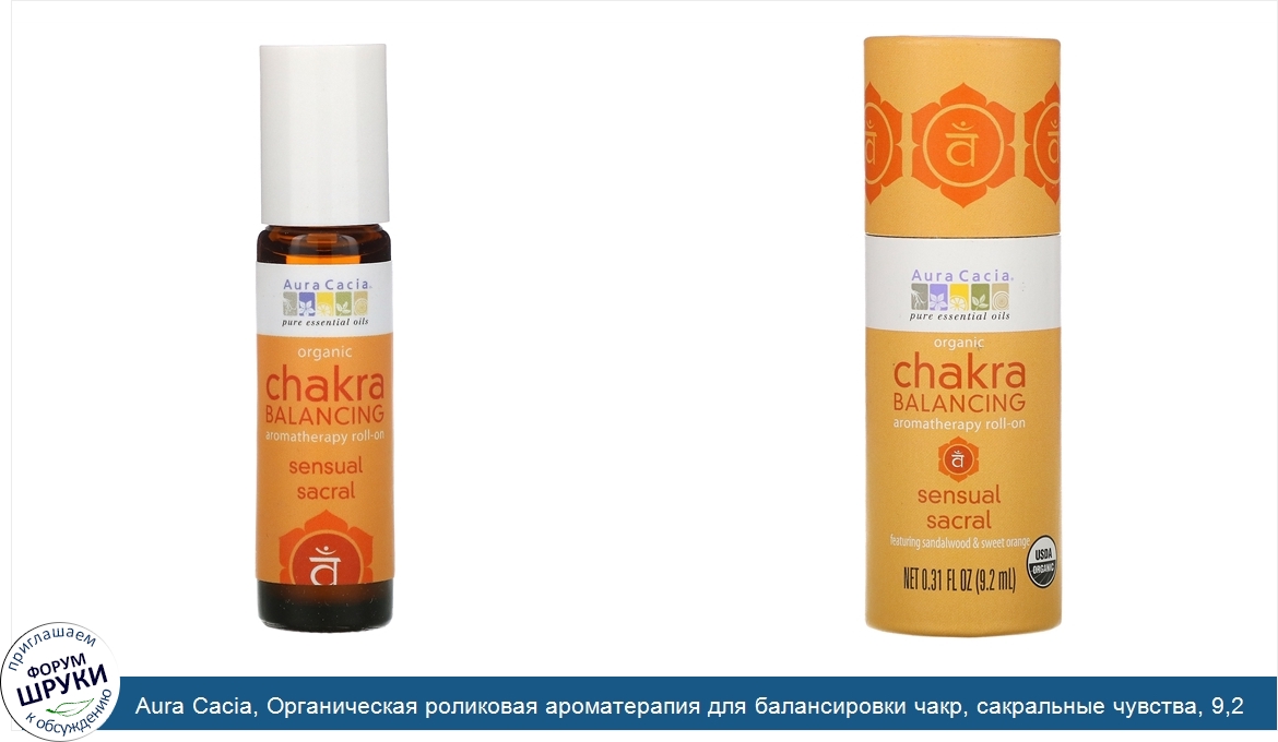 Aura Cacia, Органическая роликовая ароматерапия для балансировки чакр, сакральные чувства, 9,2 мл (0,31 жидкой унции)