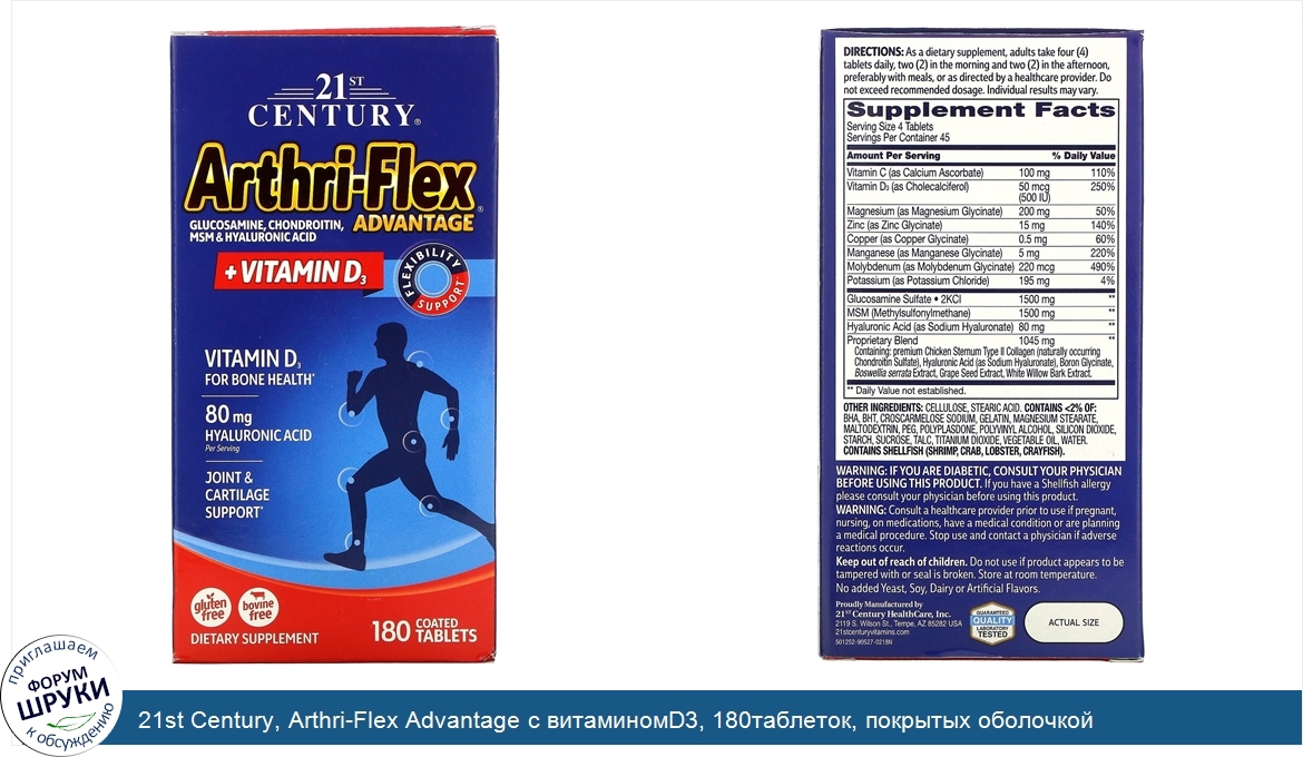 21st Century, Arthri-Flex Advantage с витаминомD3, 180таблеток, покрытых оболочкой