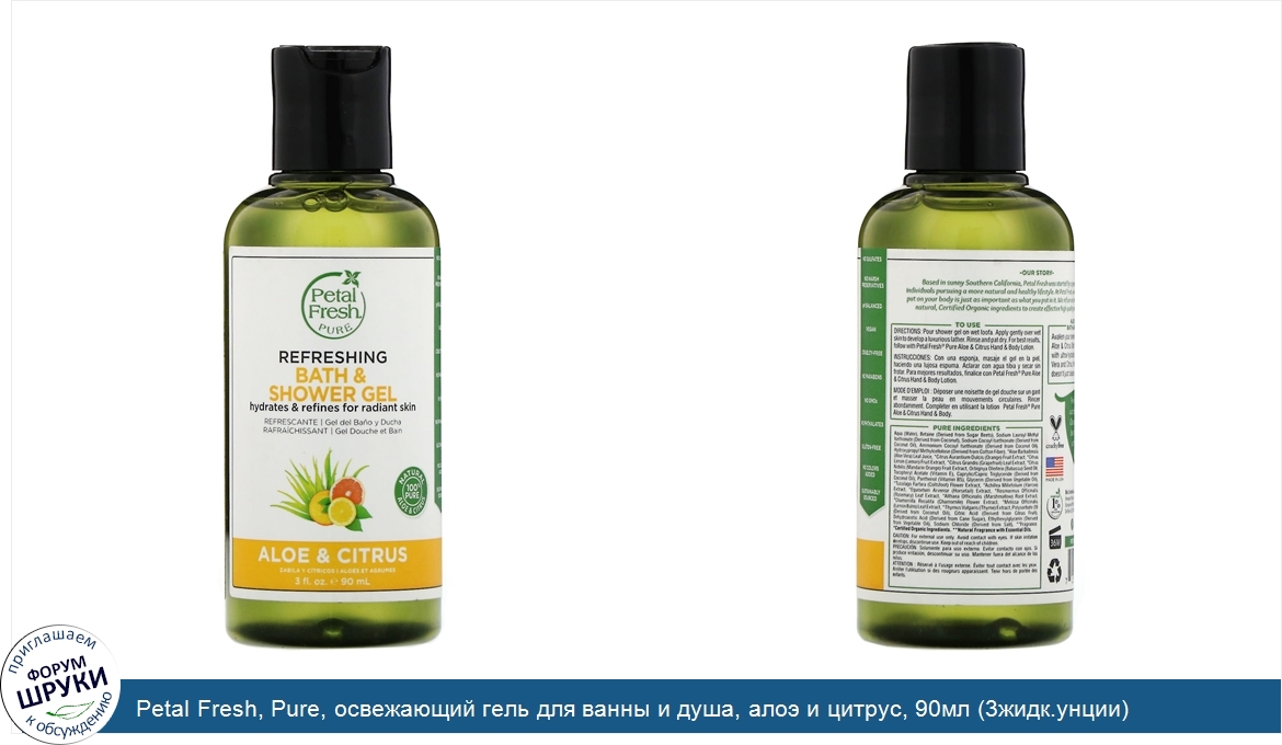 Petal Fresh, Pure, освежающий гель для ванны и душа, алоэ и цитрус, 90мл (3жидк.унции)