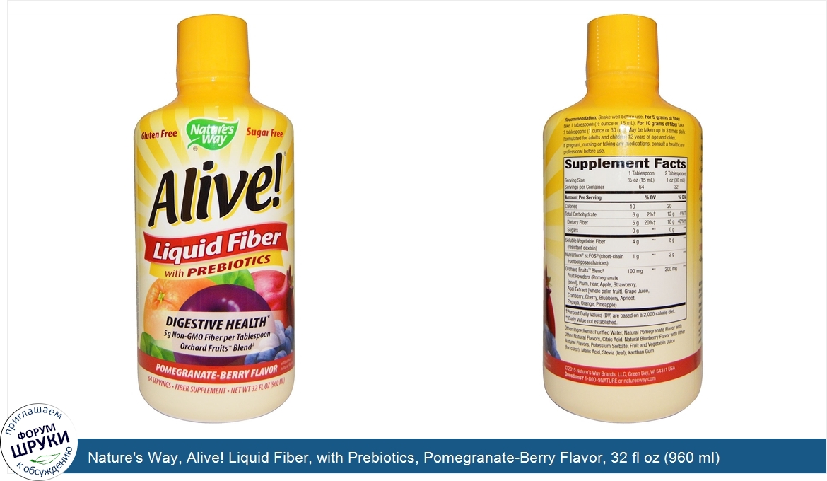 Nature's Way, Alive! Liquid Fiber, with Prebiotics, Pomegranate-Berry Flavor, 32 fl oz (960 ml)