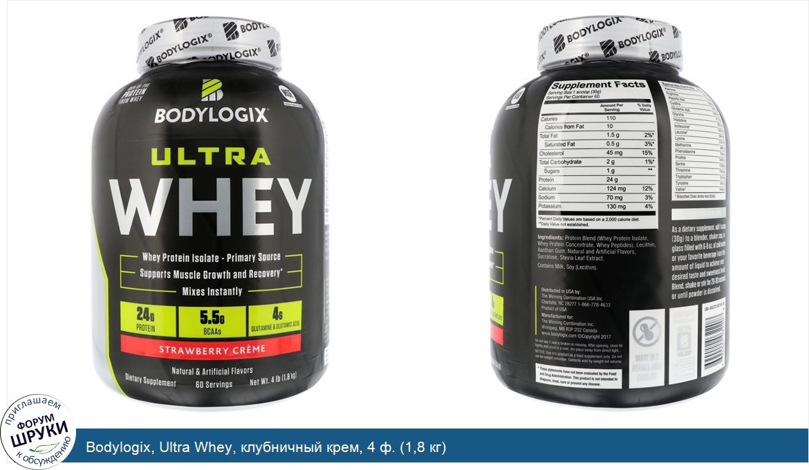 [DESCRIPT]100% протеин из молочной сыворотки. Содержимое проверено и сертифицировано NSF. Изолят сыворточного протеина - основной ингредиент. Поддержка роста мышц и восстановления. Моментальное растворение. 24 г протеина | 5,5 г аминокислот с разветвлённой цепью | 4 г глутамина и глютаминовой кислоты. Натуральные и искусственные ароматизаторы. Пищевая добавка. 60 порций. Преимущества протеина Ultra Whey от Bodylogix. Наш протеин Ultra Whey содержит только полученные методом низкотемпературной обработки, неденатурированные протеины, подвергающиеся ультра фильтрации в перекрестном потоке. Мы производим высококачественные продукты, содержимое которых точно соответствует информации на этикетке. И никаких примесей! Так как доверие играет в нашей жизни огромную роль, все наши производственные предприятия отвечают требованиям GMP (Надлежащие практики производства), а каждый наш продукт проходит сертификацию на соответствие требованиям NSF, мирового лидера в области независимых лабораторных исследований, что позволяет нам гарантировать самое высокое качество наших продуктов. Наши продукты, прошедшие клинические испытания, предназначены для того, чтобы вы смогли извлечь максимальную пользу от тренировки. Вы можете доверять нам, если вам нужно питание, нацеленное на результат и поддержание активного образа жизни. Чистота. Доверие. Эффективность. Тренируйтесь усердней. Протеин Ultra Whey от Bodylogix содержит изолят сывороточного протеина в качестве основного ингредиента, который отличается наибольшей чистотой среди всех доступных сегодня источников протеина. Высокая биологическая ценность и быстрое усвоение помогут вам достичь выдающихся результатов и перейти на новый уровень формы. Восстанавливайтесь быстрее. Благодаря наличию 5,5 г аминокислот с разветвлёнными цепями природного происхождения (BCAA) и 4 г глутамина и глютаминовой кислоты восстановление мышц больше не будет для вас проблемой.[/DESCRIPT]... (описание дополняется)