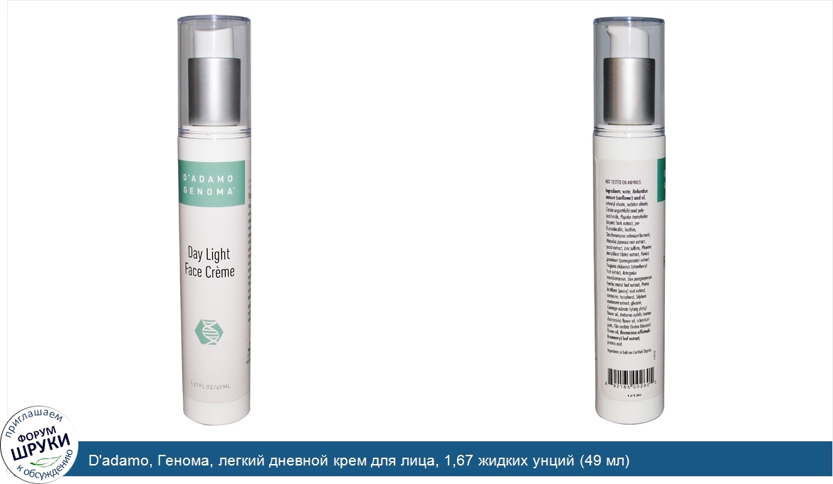 Друзья, если у вас есть отзыв/дополнение/комментарий/вопрос относительно D'adamo, Генома, легкий дневной крем для лица, 1,67 жидких унций (49 мл) - напишите его ответом в эту тему (это будет полезно всему сообществу в целом и вам в отдельности).