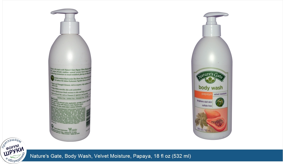 ru Nature's Gate, Body Wash, Velvet Moisture, Papaya, 18 fl oz (532 ml)