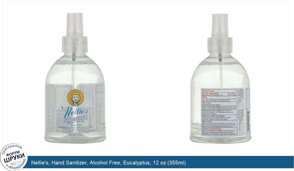 Друзья, если у вас есть отзыв/дополнение/комментарий/вопрос относительно Nellie's, Hand Sanitizer, Alcohol Free, Eucalyptus, 12 oz (355ml) - напишите его ответом в эту тему (это будет полезно всему сообществу в целом и вам в отдельности).