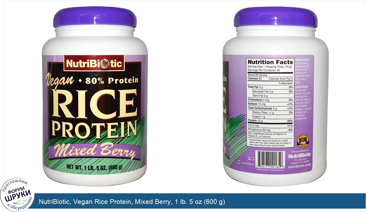 Друзья, если у вас есть отзыв/дополнение/комментарий/вопрос относительно NutriBiotic, Vegan Rice Protein, Mixed Berry, 1 lb. 5 oz (600 g) - напишите его ответом в эту тему (это будет полезно всему сообществу в целом и вам в отдельности).