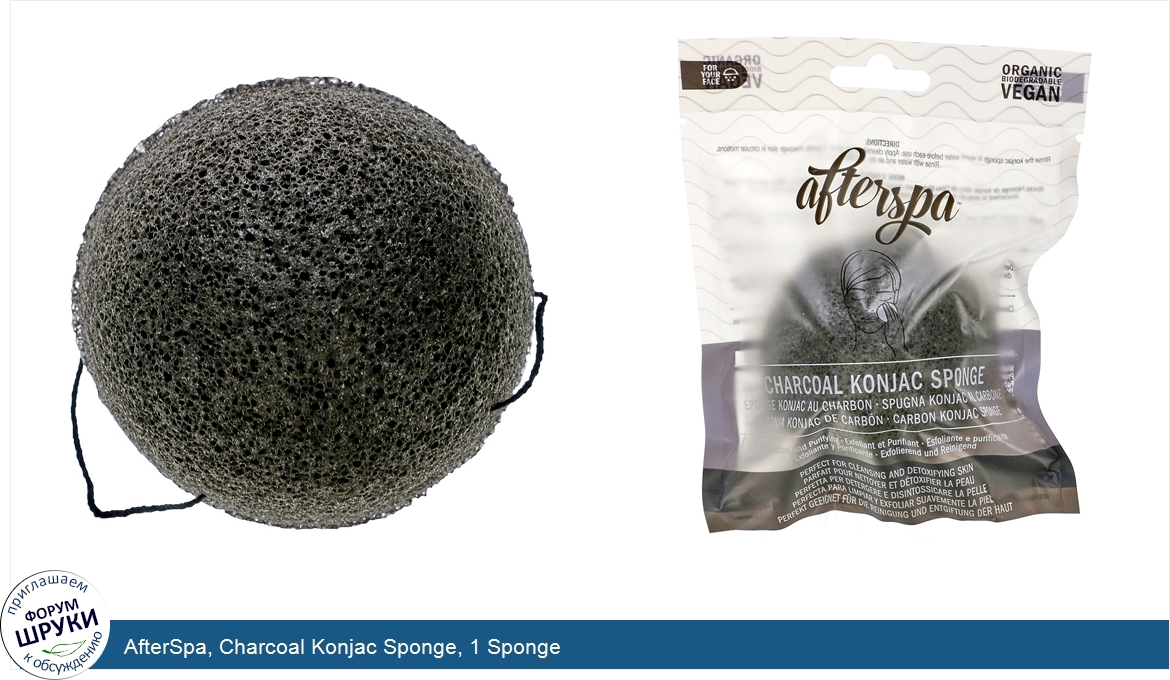 AfterSpa, Charcoal Konjac Sponge, 1 Sponge