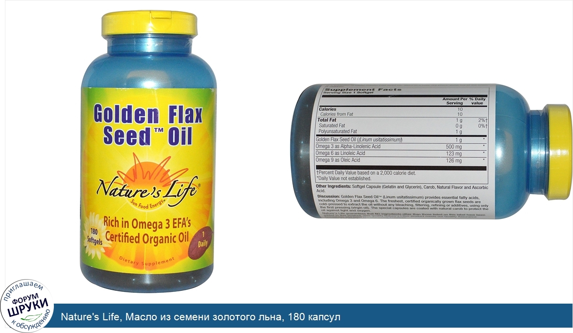 Друзья, если у вас есть отзыв/дополнение/комментарий/вопрос относительно Nature's Life, Масло из семени золотого льна, 180 капсул - напишите его ответом в эту тему (это будет полезно всему сообществу в целом и вам в отдельности).