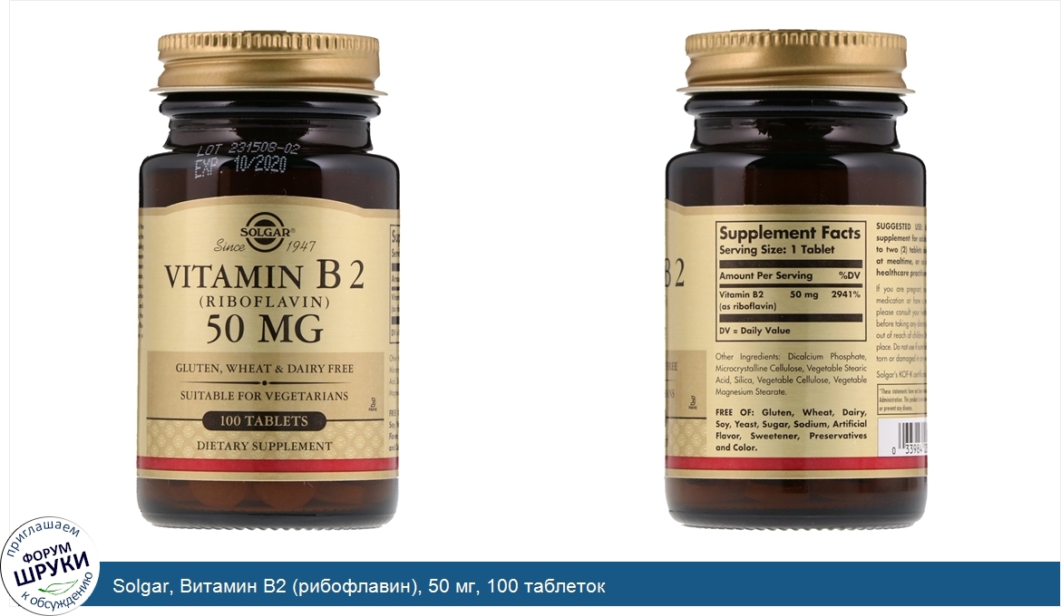 Solgar, Витамин B2 (рибофлавин), 50 мг, 100 таблеток