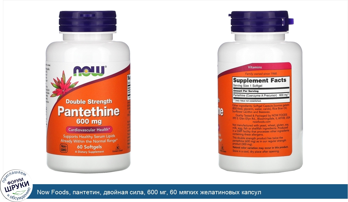 Друзья, если у вас есть отзыв/дополнение/комментарий/вопрос относительно Now Foods, пантетин, двойная сила, 600 мг, 60 мягких желатиновых капсул - напишите его ответом в эту тему (это будет полезно всему сообществу в целом и вам в отдельности).