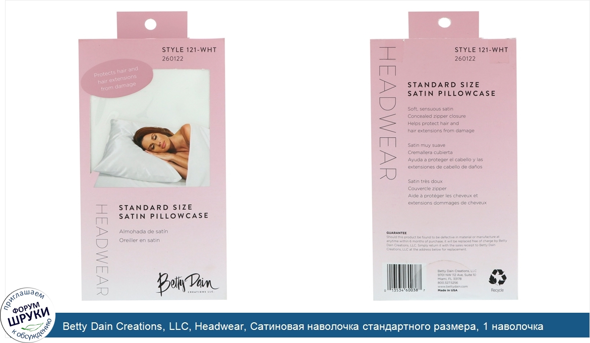 Друзья, если у вас есть отзыв/дополнение/комментарий/вопрос относительно Betty Dain Creations, LLC, Headwear, Сатиновая наволочка стандартного размера, 1 наволочка - напишите его ответом в эту тему (это будет полезно всему сообществу в целом и вам в отдельности).