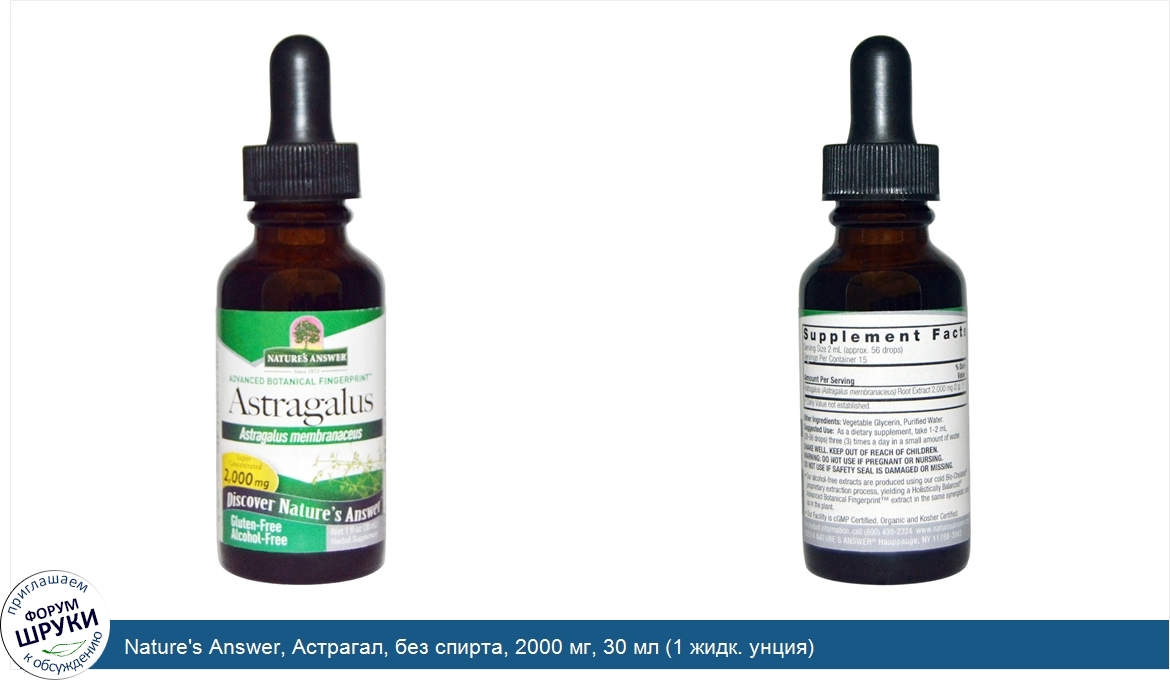 Nature's Answer, Астрагал, без спирта, 2000 мг, 30 мл (1 жидк. унция)