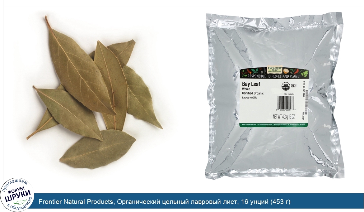 ru Frontier Natural Products, Органический цельный лавровый лист, 16 унций (453 г)
