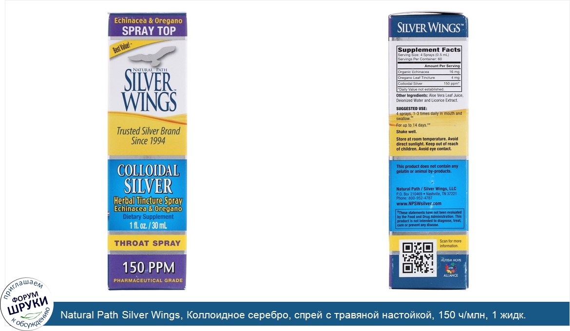 Друзья, если у вас есть отзыв/дополнение/комментарий/вопрос относительно Natural Path Silver Wings, Коллоидное серебро, спрей с травяной настойкой, 150 ч/млн, 1 жидк. унц. (30 мл) - напишите его ответом в эту тему (это будет полезно всему сообществу в целом и вам в отдельности).
