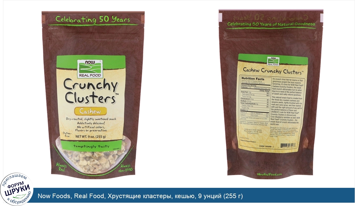 [DESCRIPT]Dry-roasted, Slightly Sweetened Snack. Addictively Delicious! . No Artificial Colors, Flavors or Preservatives. Gluten-Free. Temptingly Tasty. Always Real. Always Non-GMO. Celebrating 50 Years of Natural Goodness. Vegetarian/Vegan Product. It's crunch time! Not for exams or that ginormous project the boss expects tomorrow. It's time for NOW Real Food Cashew Crunchy Clusters, the snack food crunch-aficionados turn to when they're in need of the perfect balance of sweet-and-salty natural goodness. This natural snack food is created from the finest dry-roasted cashews and sesame seeds, lightly brushed with rice malt and cane syrup, and then dashed with just the right amount of sea salt for the perfect balance of flavor and crunch!! Look for NOW Real Food Crunchy Clusters in Almond and Cran-Blueberry varieties as well. NOW Real Food Crunchy Clusters - the snack food of crunch aficionados the world over. Because you are what you eat, NOW Real Food has been committed to providing delicious, healthy, natural and organic foods since 1968. We're independent, family owned, and proud of it. Keep it natural. Keep it real.[/DESCRIPT]... (описание дополняется)