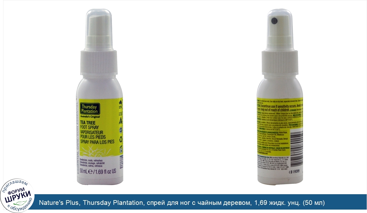 ru Nature's Plus, Thursday Plantation, спрей для ног с чайным деревом, 1,69 жидк. унц. (50 мл)