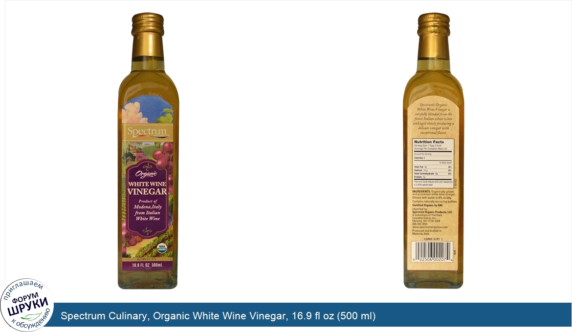 Друзья, если у вас есть отзыв/дополнение/комментарий/вопрос относительно Spectrum Culinary, Organic White Wine Vinegar, 16.9 fl oz (500 ml) - напишите его ответом в эту тему (это будет полезно всему сообществу в целом и вам в отдельности).