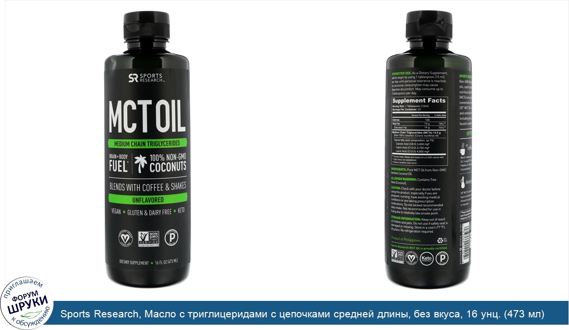 Друзья, если у вас есть отзыв/дополнение/комментарий/вопрос относительно Sports Research, Масло с триглицеридами с цепочками средней длины, без вкуса, 16 унц. (473 мл) - напишите его ответом в эту тему (это будет полезно всему сообществу в целом и вам в отдельности).
