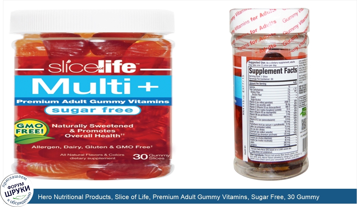 Друзья, если у вас есть отзыв/дополнение/комментарий/вопрос относительно Hero Nutritional Products, Slice of Life, Premium Adult Gummy Vitamins, Sugar Free, 30 Gummy Slices - напишите его ответом в эту тему (это будет полезно всему сообществу в целом и вам в отдельности).